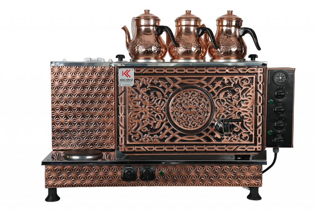 3'lü Bakır Sıfıra Sıfır Doğalgazlı ve Elektrikli Çay Kazanı