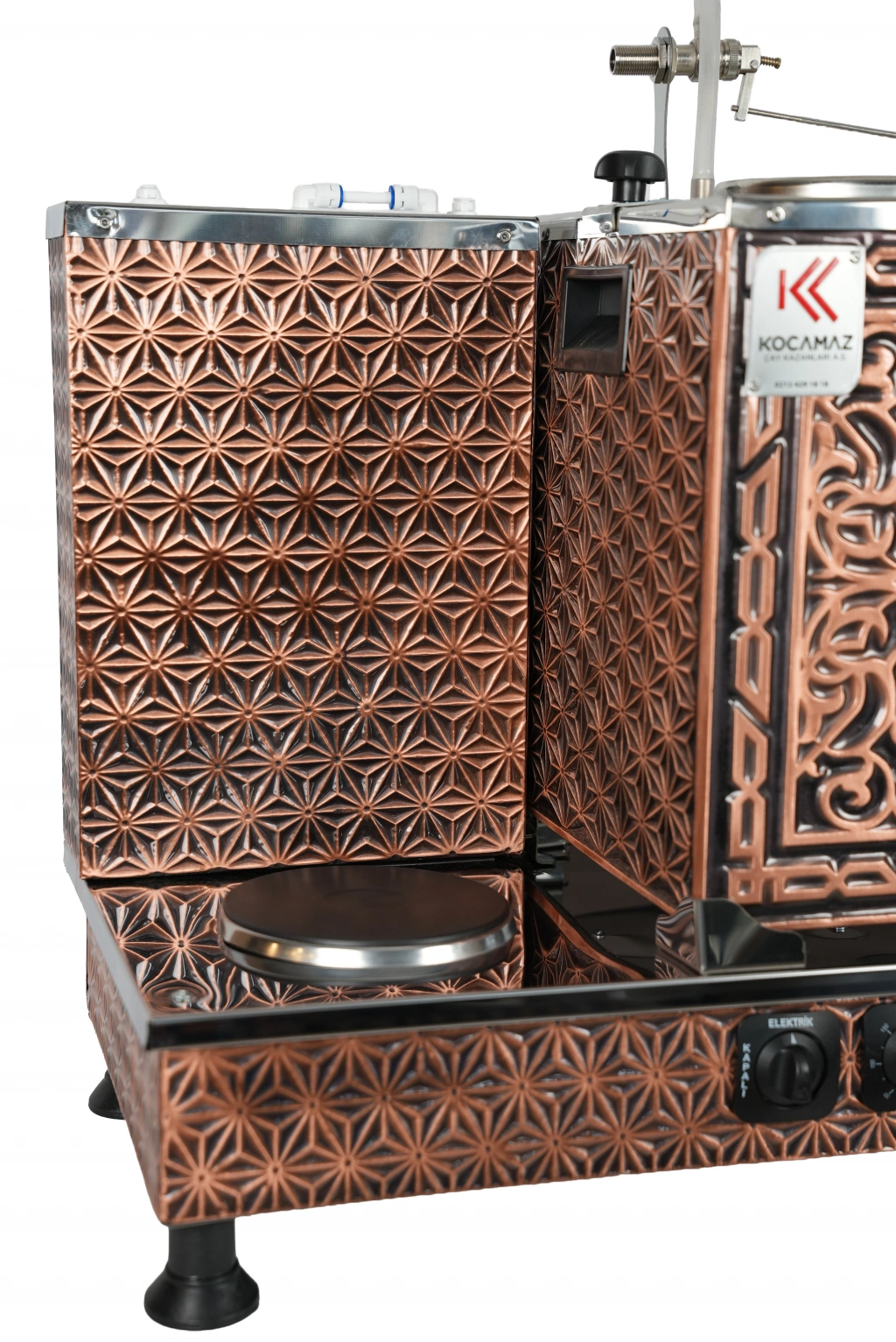 4'lü Bakır Sıfıra Sıfır Doğalgazlı ve Elektrikli Özel Desen Çay Kazanı