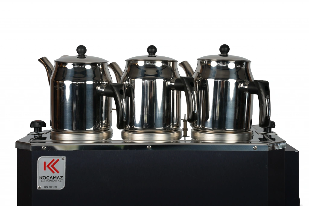 3'lü Dekoratif İnox Doğalgazlı ve Elektrikli Çay Kazanı