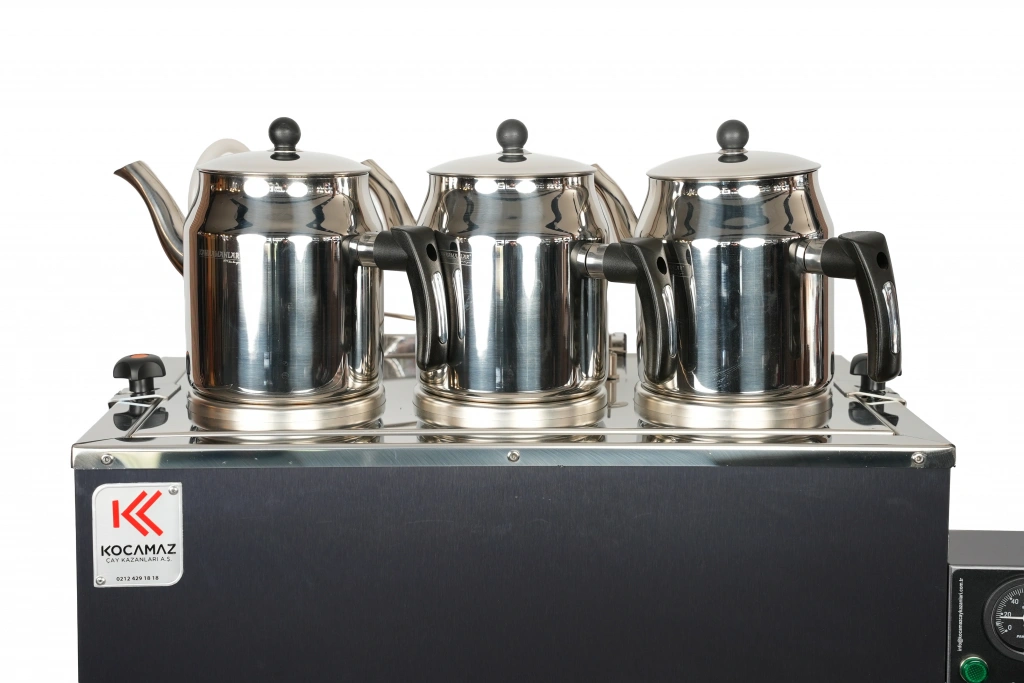 3'lü Dekoratif İnox Doğalgazlı ve Elektrikli Çay Kazanı