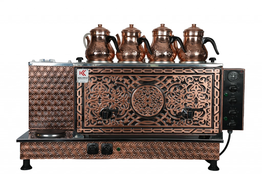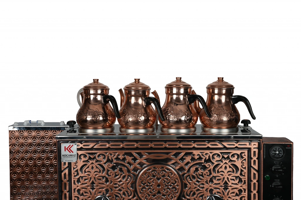4'lü Bakır Sıfıra Sıfır Doğalgazlı ve Elektrikli Özel Desen Çay Kazanı