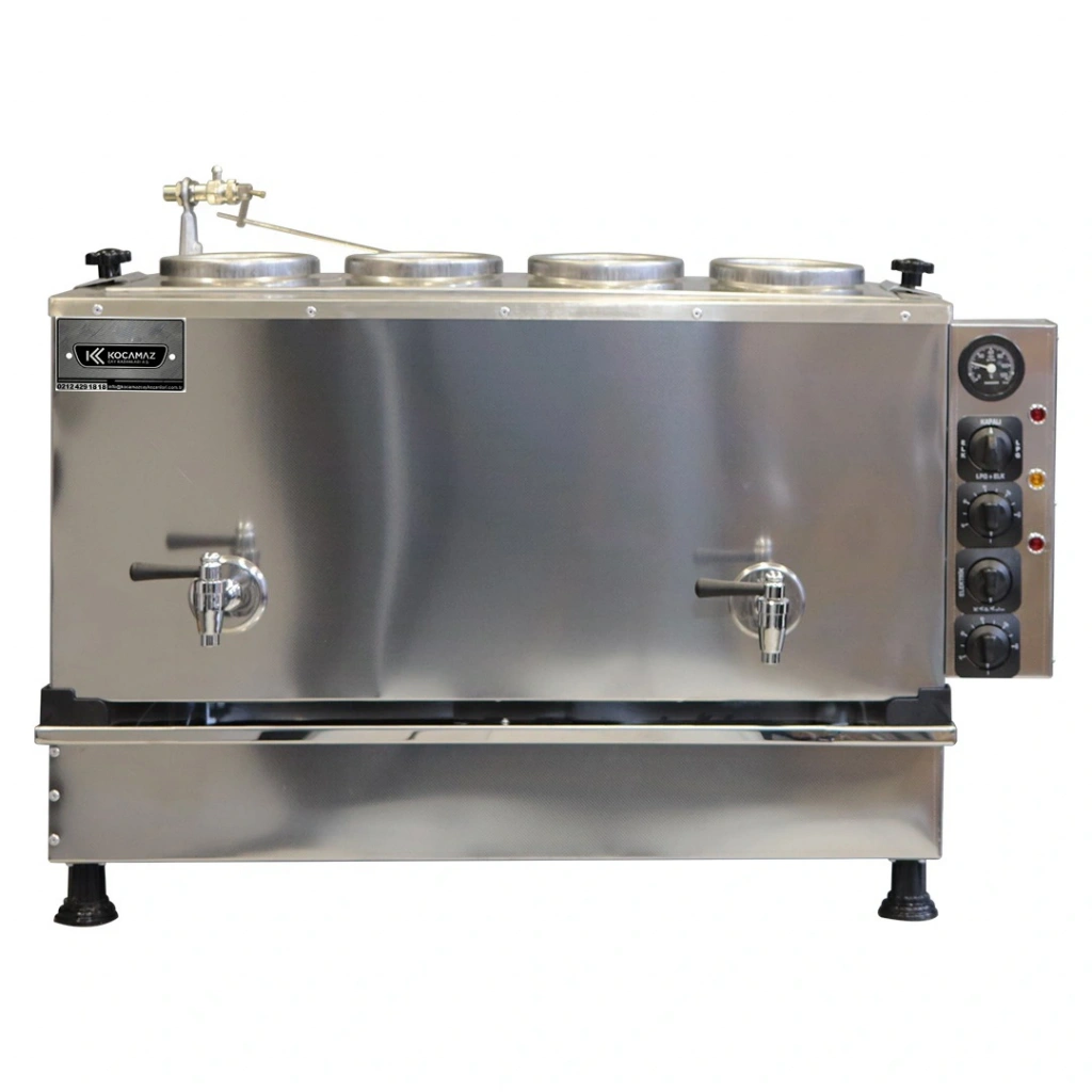 SIFIRA SIFIR ELEKTRİKLİ ÇAY KAZANLARININ TEKNİK ÖZELLİKLERİ ISITMA SEÇENEKLERİ: Çay Kazanlarımız; 1-Sadece elektrikli olmak üzere ısıtma sağlar, ISI YALITIMLI KAZAN GÖVDESİ: İç kazan ve dış kazan arasındaki ısı yalıtımlı 5 cm kalınlığındaki izolasyon sayesinde Isı kaybını ve gereksiz enerji sarfiyatını önleyerek, ekonomik olarak çok yüksek oranda avantaj sağlar. ARITMA: Ürün üzerinde bulunan su arıtma cihazı, kazana yumuşatılmış nitelikli su girişini sağlar. ŞAMANDIRA: boyut ve renk fark etmeksizin bütün çay kazanı modellerimizde Su seviyesi belirlenen ölçüde otomatik olarak kontrol eder. Manuel olarak su takviye etmenize kolaylık sağlayan bir özelliktir. AÇILABİLİR ÜST KAPAK: Tüm çay kazanı modellerimizde kazanların üst kapağı açıldığından dolayı kazanların periyodik iç temizliği son derece pratiktir. FULL OTOMATİK: Tüm çay kazanı modellerimiz termostatlı olup, elektrik ve gaz kontrolü otomatik olarak sağlanır. ISI GÖSTERGESİ: Çay Kazanları Termometreli (ısı Göstergesi) olup kazan içindeki su sıcaklık değeri gözlemlenebilir... DEMKEŞ: Demlik koyma yerleri özel tasarlanmış olup, demliğinizi kaymadan rahatça koyabilirsiniz... CE BELGELİ: Tüm modellerimiz doğalgaz uyumludur. ERGONOMİK: Kaliteli yapısı iyi çay demleme özelliği, farklı tasarımı, görsel tasarımı ve fonksiyonel özellikleri ile kullanıcılarına büyük kolaylık sağlar. KAZAN DIŞ YÜZEYLERİ: Antik bakır işleme, elektrostatik fırın boyalı renk çeşitleri veya inox (paslanmaz krom) seçeneklerinden yapılmaktadır. Kaliteli malzeme, teknolojik özelliklere sahip çay kazanlarımızı, satış sonrası teknik servis hizmetimize güvenerek alabilirsiniz.