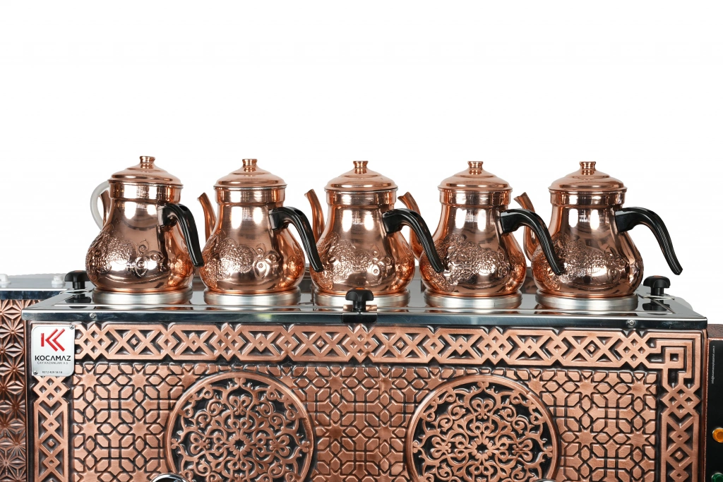 4'lü Bakır Sıfıra Sıfır Doğalgazlı ve Elektrikli Özel Desen Çay Kazanı