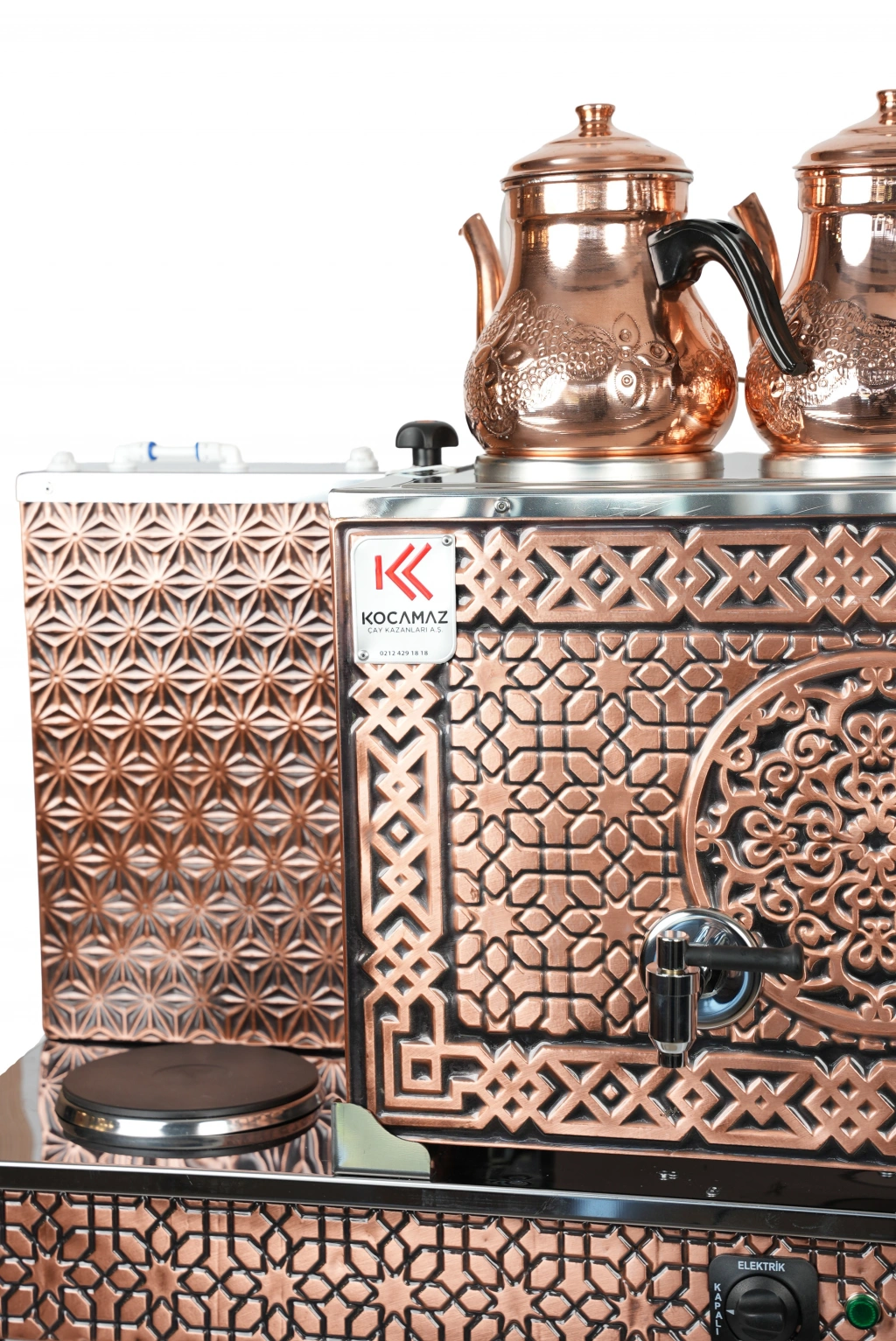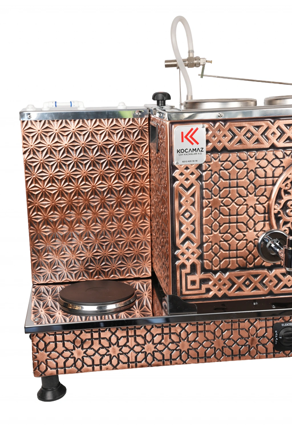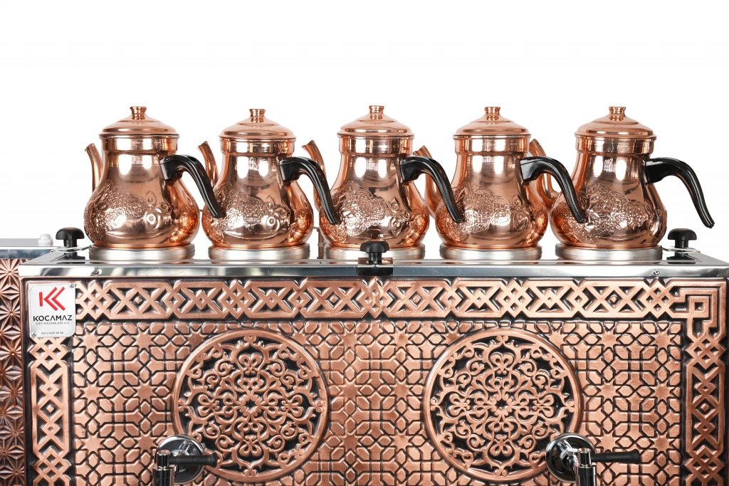4'lü Bakır Sıfıra Sıfır Doğalgazlı ve Elektrikli Özel Desen Çay Kazanı